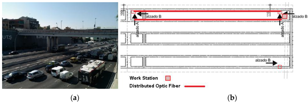 - Villalba, V.; Casas, J.R.; Villalba, S. Application of OBR fiber optic technology in structural health monitoring of Can Fatjó Viaduct (Cerdanyola de Vallés-Spain). In Proceedings of the VI International Conference on Bridge Maintenance, Safety and Management, Lake Maggiore, Italy, 8–12 July 2012.