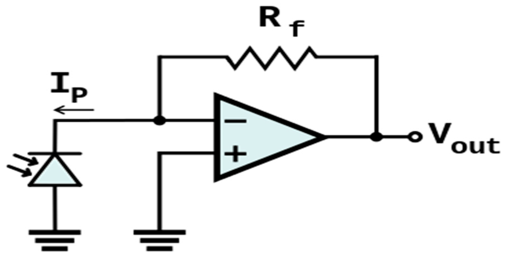 For this paper, we implemented a modified TIA for which the basic circuit of Figure 4 was used, as is shown in Figure 5.