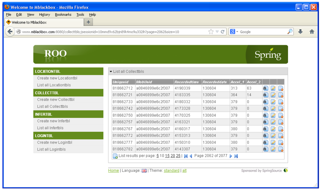 Collection server using Spring Roo.