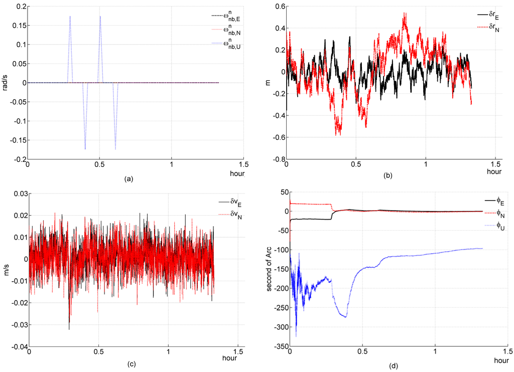 In an integrated strapdown inertial navigation system (SINS)/global position system (GPS), the property of the SINS and GPS is complementary. The SINS is a self-contained system and can provide continuous available navigation information at a relative high update rate. The measurements provided by the GPS receiver are used for the information fusion process to prevent the growth of navigation errors with time. Moreover, the biases of the inertial measurement unit (IMU) can be estimated, which will improve the inertial navigation performance during the periods when the satellite signals are jammed [6,7].