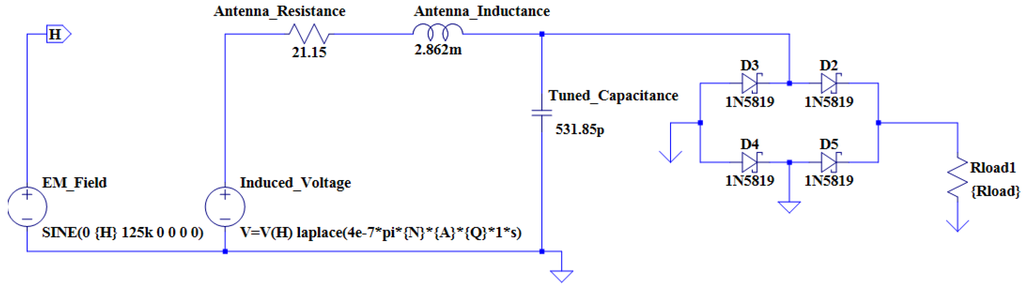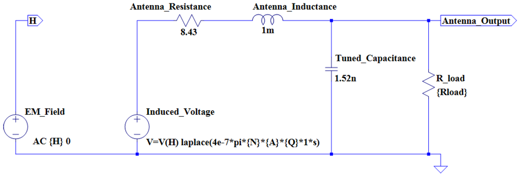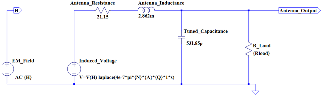 An antenna model is once again constructed in LTSpice IV. Figure 4 illustrates the antenna model for the square coil.