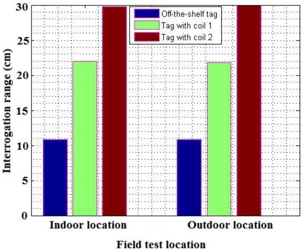 The different interrogation ranges obtained in an indoor and outdoor location.