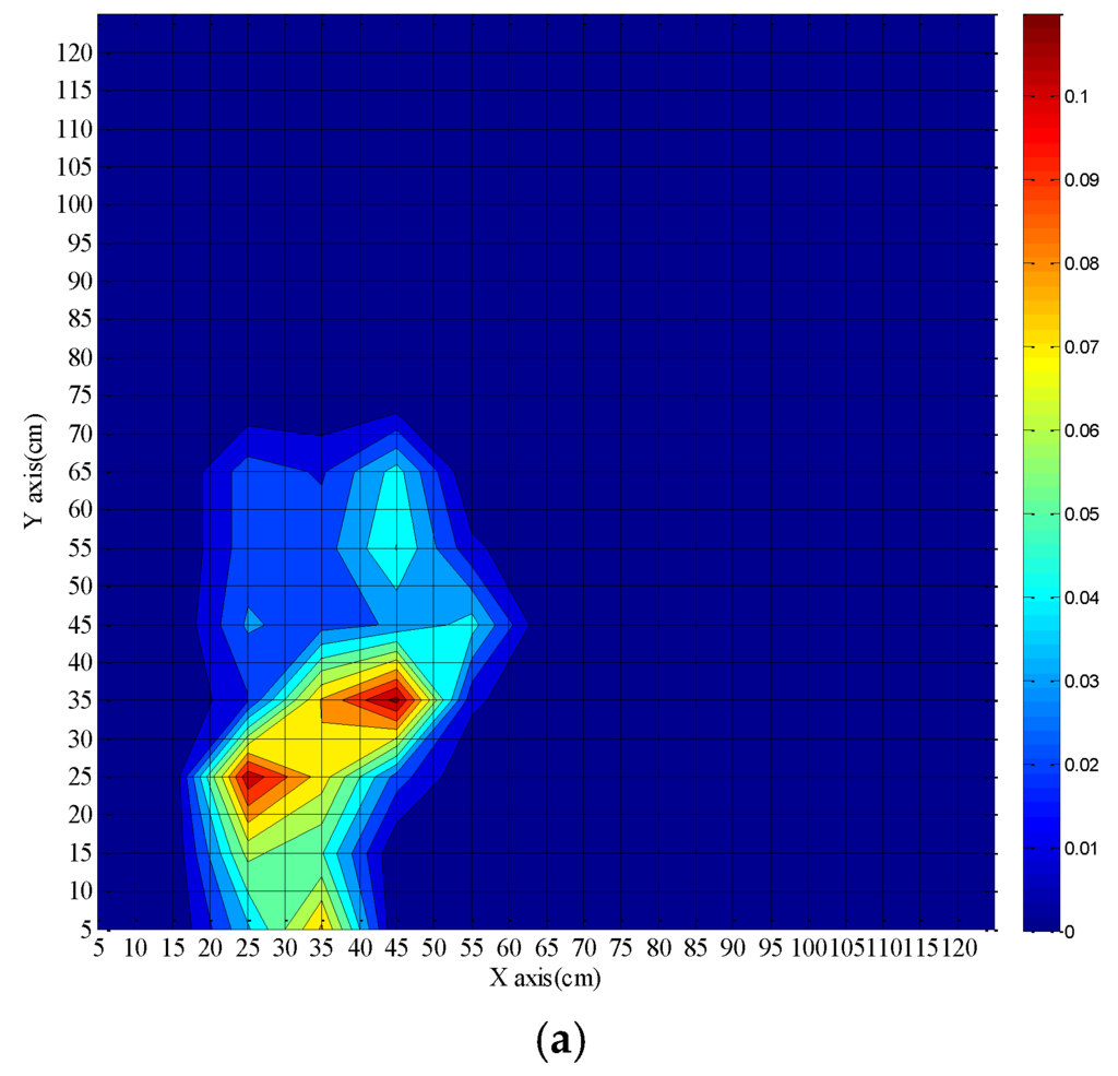 Nowadays, various methods based on temperature measurements have been proposed to locate fires as the temperature change is perhaps the most obvious sign when a fire occurs. The main research direction is that sensor arrays with four detectors are used to locate the fire source based on the time-delay estimation algorithm []. One or two sensor arrays are adopted to calculate the distance between the fire source and the sensor array with far field algorithms [,], and near field algorithms []. The proposed methods yield good results as long as the fire source is close to the sensor array. However, the reliability of the localization method may suffer in the case of a remote fire. Moreover, a large number of the sensor arrays are needed when the fire has to be monitored in a huge space. Thus it is difficult to overcome the limitations such as high construction costs, difficulty in installing signal-circuits, and difficulty in reducing measurement time when taking into consideration the temperature measurement with discrete sensors.