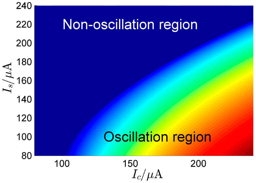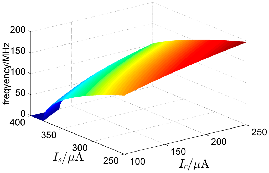 3.2. Relationship between Oscillation Frequency and Currents (Ic,Is)