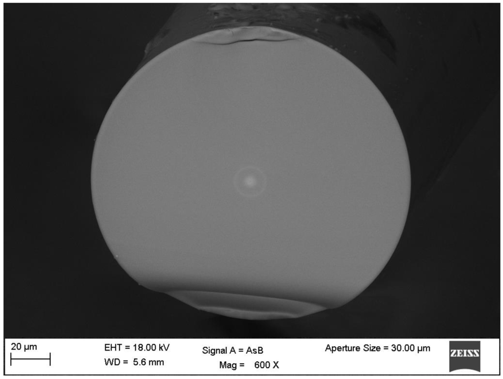 For the purpose of fabricating the MZI, two conventional single mode fibers (SMF-28) and a segment of a non-zero dispersion-shifted fiber (Corning Fiber Model SMFLF) were used. In Figure 1 a cross-section microscope image of the used NZ-DSF is shown. Here, it can be observed that the NZ-DSF has a core diameter of 5.8 µm, a cladding diameter of 125 µm and a ring core diameter of 16 µm but it is important to point out that, this ring core has only a thickness of 3 µm. Moreover, the effective refractive indexes layers are: for the core, ring core and cladding respectively [10].