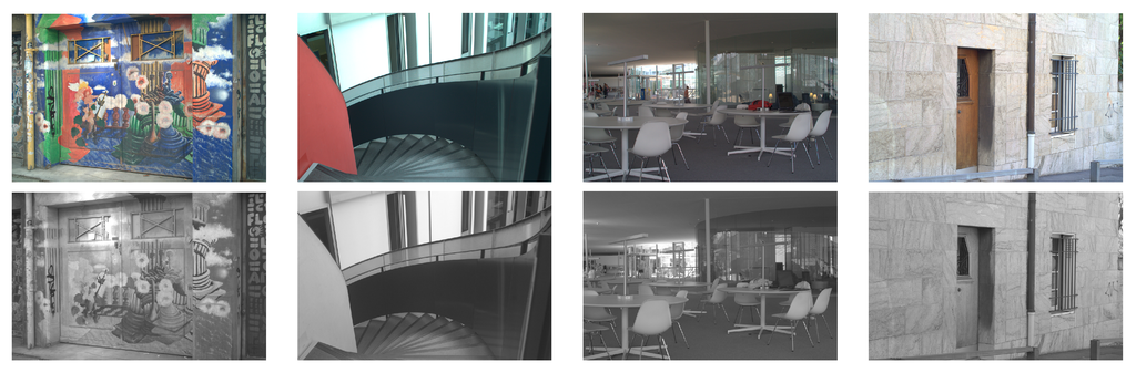 Four pairs of images from the subset used for validation: (Top) Visible spectrum images; (Bottom) NIR images.