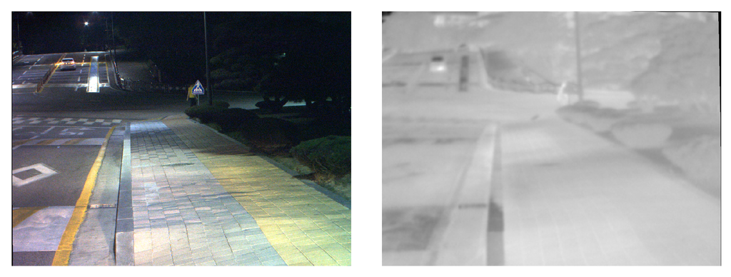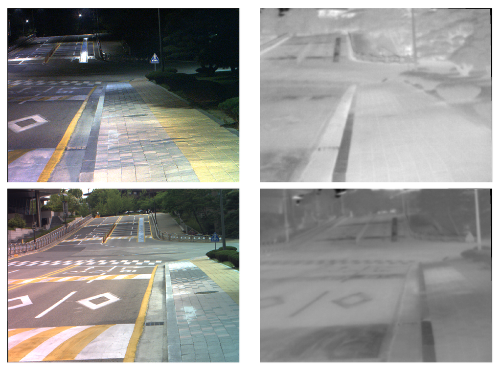 - Poujol, J.; Aguilera, C.; Danos, E.; Vintimilla, B.; Toledo, R.; Sappa, A.D. Visible-Thermal Fusion based Monocular Visual Odometry. In ROBOT’2015: Second Iberian Robotics Conference; Springer-Verlag: Lisbon, Portugal, 2015; pp. 517–528. [Google Scholar]