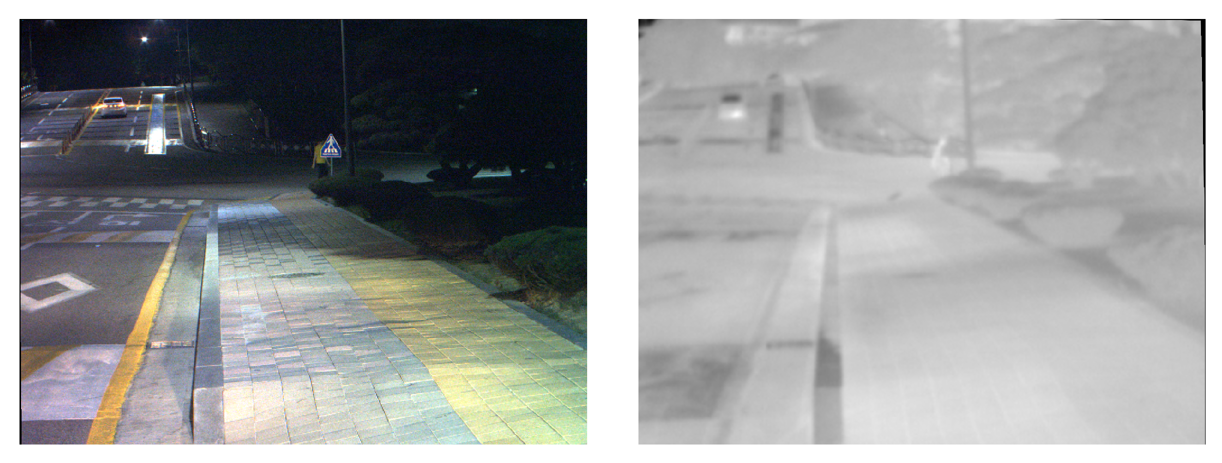 8]. This data set contains pair of images from the same scene, taken with the same platform (a color camera from PointGrey and a thermal camera from FLIR), but at a different day-time.