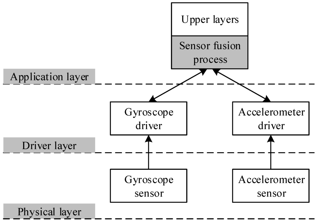 However, due to the rapid upgrading of smartphones, mobile applications are facing difficulties in that the code requires modification to adapt to additional hardware components in new devices. This problem negatively affects billions of existing smartphones in the world and millions of applications in the market stores [4]. For instance, the pedometer sensor was introduced in the Google Nexus 5 (Google, San Francisco, CA, USA), Samsung Galaxy S5 (Samsung, Seoul, Korea), and Apple iPhone 5S (Apple, Cupertino, CA, USA) generations. Therefore, step-count information provided by the pedometer cannot be taken into account without modifications of their code. Moreover, even if the developers try to modify and re-compile the code to utilize the sensor fusion technique for upgrading their applications, another problem arises because the applications separately apply sensor fusion using their own approach. This not only burdens the smartphone’s performance, but also creates more latency in the processing time [5].