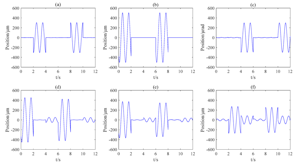 As can be seen by comparing Equations (7) and (8), the remaining terms are the linear superposition of the translational movement of the stage in X and Y direction after the quadratic terms such as have been ignored. So, similarly, the decoupling models of the stage moment in situation (2) and (3) are the same as Equation (12).