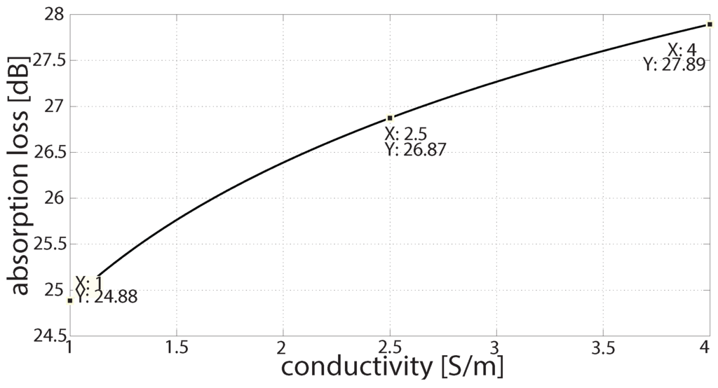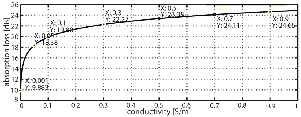 The amount of absorption loss is calculated using Equation (6) [7]: