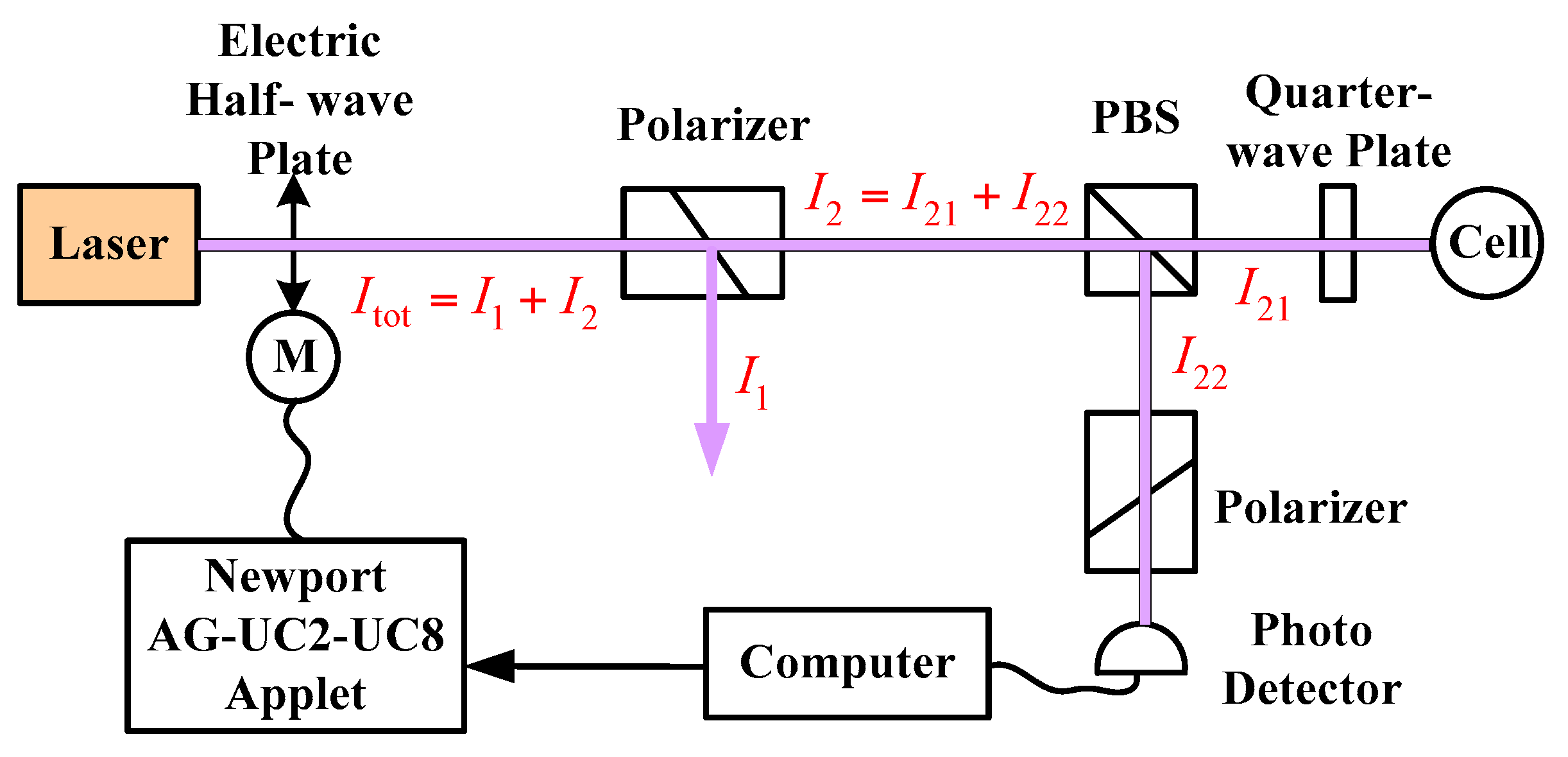 Schematic diagram of the power stabilization system. Newport AG-UC2-UC8 Applet is the piezo motor driven components.