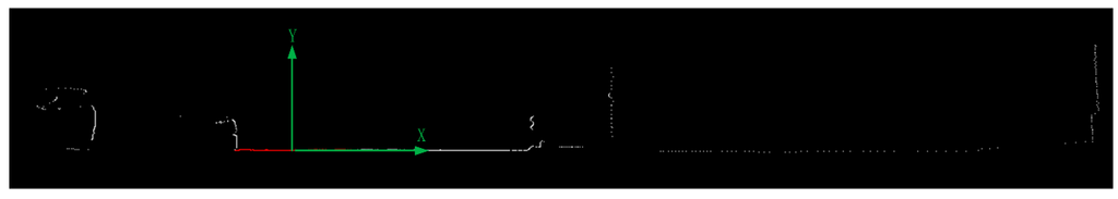 In order to extract road markings more efficiently and simplify the road marking points extraction algorithm, road points (including asphalted road surface points and road marking points) are first extracted from the raw LiDAR point clouds and then road markings are further extracted from the road points. In [28], road surface is segmented from the feature image generated by the raw 3D LiDAR points. In [29], road edges are extracted by combination of two modified versions of the parametric active contour model and road points can be extracted by the obtained road edges. In [30], road points are extracted by curbstone information on both sides of the road. In [15,31], road points are segmented from points in each scanner cycle by PCA analysis.