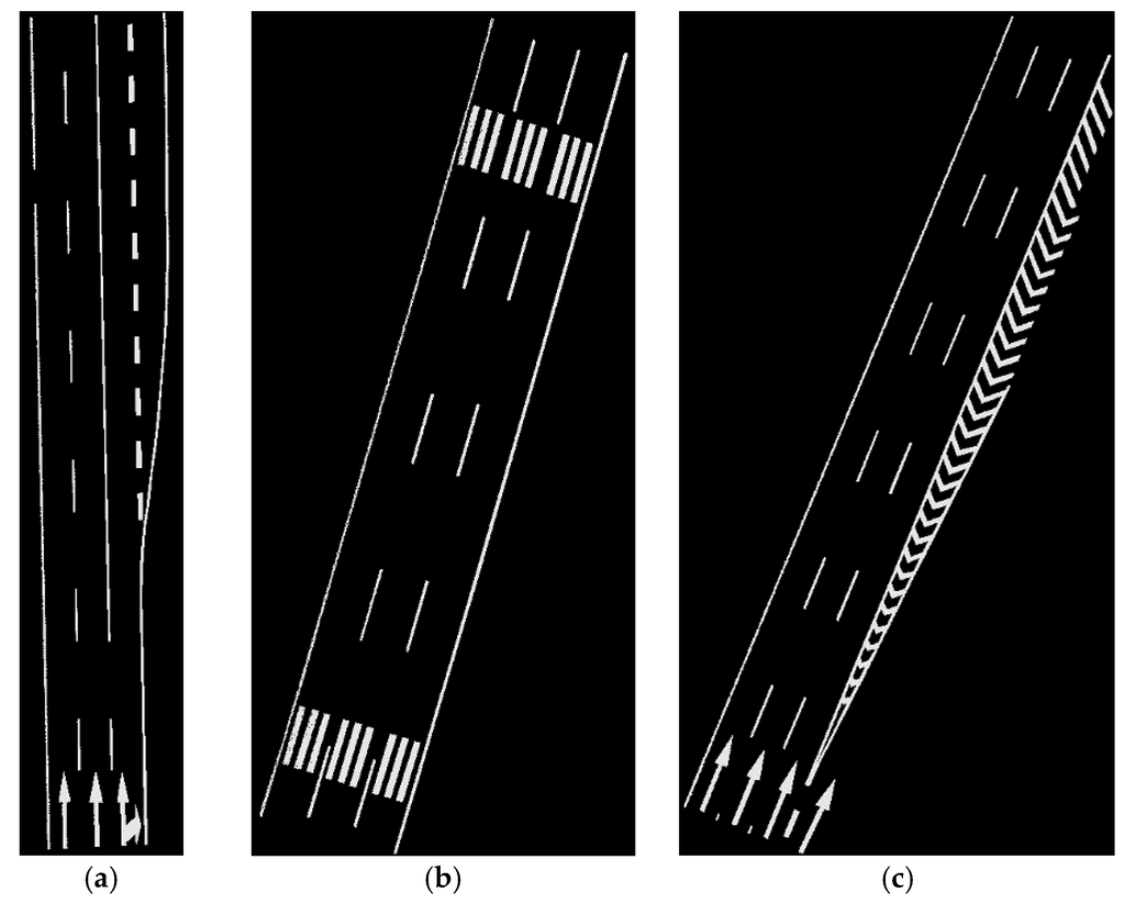 Road markings manually classified: (a) from data sample A; (b) from data sample B; (c) from data sample C.