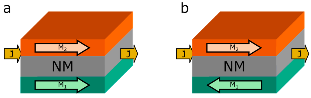 It has been almost 30 years since one of the most fascinating advances in solid state physics occurred, the discovery of the giant magnetoresistance effect (GMR) by Grünberg and Fert in 1988 [,]. In thin metallic film systems, they observed that the magnetization of adjacent ferromagnetic films, separated by a thin non-magnetic interlayer, spontaneously align parallel or antiparallel, depending on the thickness of the interlayer. The orientation of the magnetization in the ferromagnetic layers strongly influences the resistance of the system. A parallel orientation is characterized by an electrical state of low resistance, while an antiparallel orientation is a state of high resistance. Due to the fact that the spacer layer thickness determines the initial configuration, an initially antiparallel orientation can be realized. The charm of this system lies in the fact that it enables a sensing of external magnetic field strengths in electrical units in between the two electric states of resistance. This discovery triggered an extensive research activity in this field in order to understand the underlying physical phenomenon as well as to exploit its technological potential. A remarkably short period, only a decade, lies between the discovery of the GMR effect and its first commercial realization in the form of magnetic field sensors and hard-disk read-heads []. Nowadays the spectrum of successful applications of GMR technology is impressively broad, ranging from applications in the air- and space or automotive industry, non-destructive material testing, or the compass functionality in mobile phones to biomedical techniques, like biometric measurements of eyes and biosensors, e.g., for the detection of viruses [,,]. Thus, the potential of magnetoresistive technology seems to be far from being exhausted.