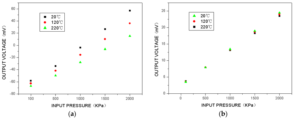 In recent years, silicon piezoresistive pressure sensors fabricated using MEMS technology have been extensively applied in commercial and industrial fields because of their small size, high precision and low cost [1]. Additionally, there is a growing demand for high-temperature pressure sensors for use in extreme temperature environments such as oil prospecting, chemical processing and aircraft gas turbine combustion controls, where pressure sensors must usually work at 220 °C or higher [2]. The high-temperature applications of silicon piezoresistive pressure sensors have become a current research priority.