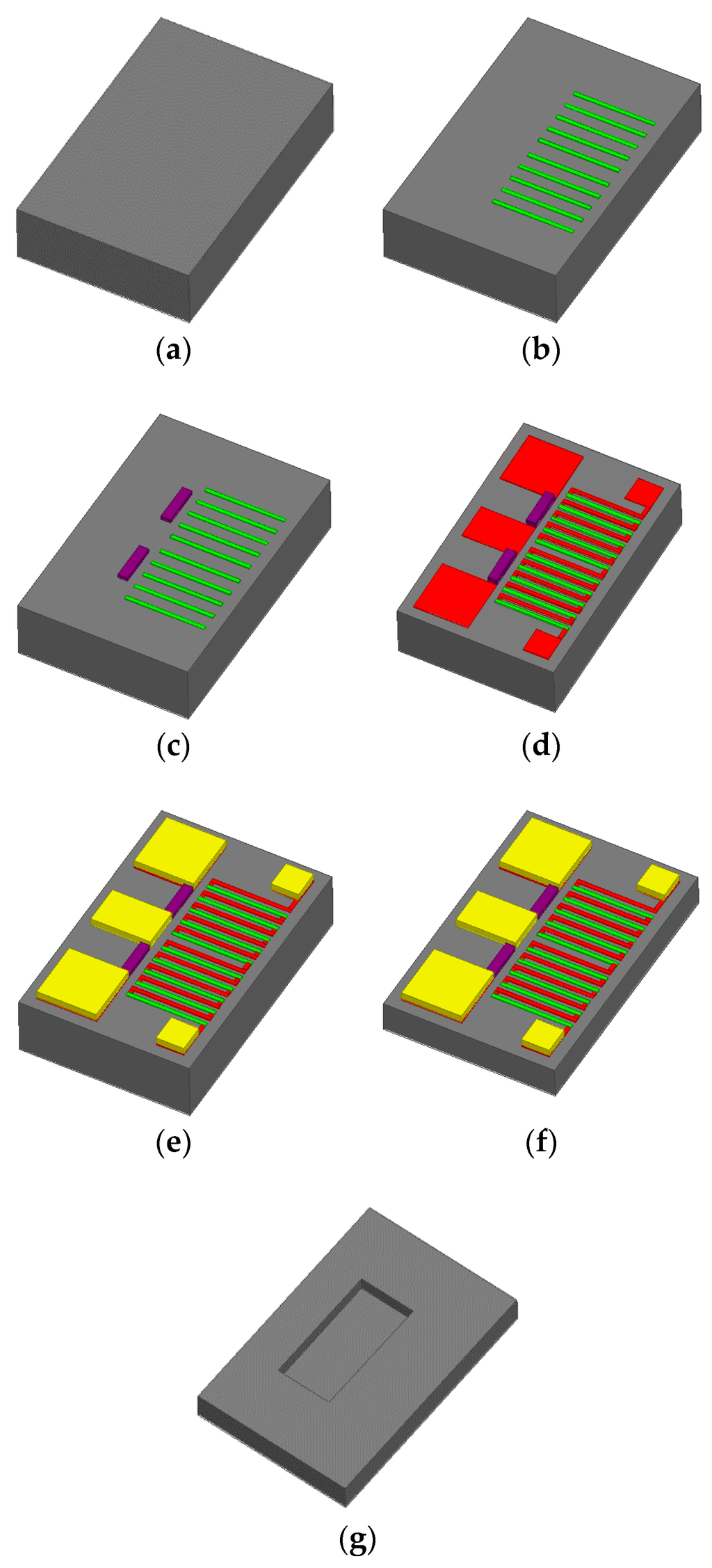 The power sensor is fabricated using a GaAs MMIC process and MEMS technology. As shown in Figure 8, the fabrication steps are described as follows [10]: