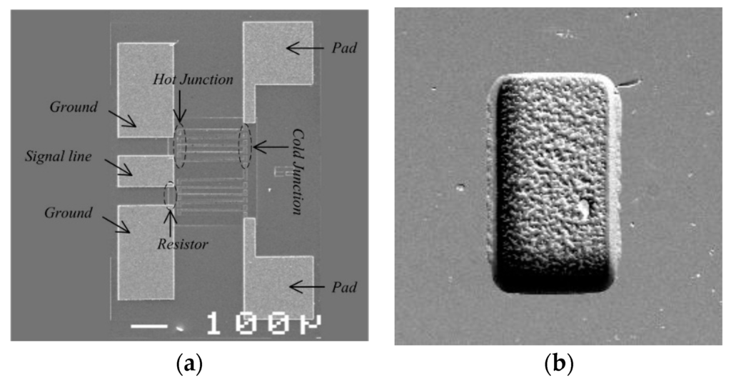 - Wang, D.; Liao, X.P.; Liu, T. A thermoelectric power sensor and its package based on MEMS technology. J. Microelectromech. Syst. 2012, 21, 121–131. [Google Scholar] [CrossRef]