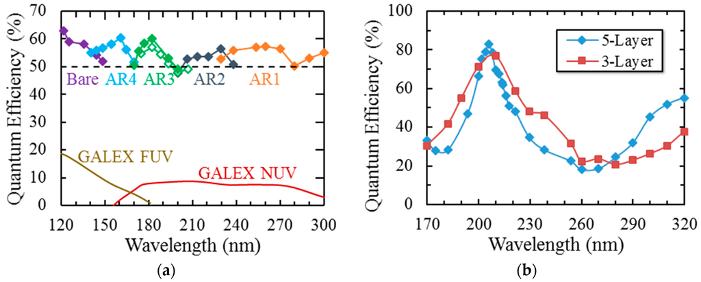 3.1.1. Quantum Efficiency in the Ultraviolet Spectral Range