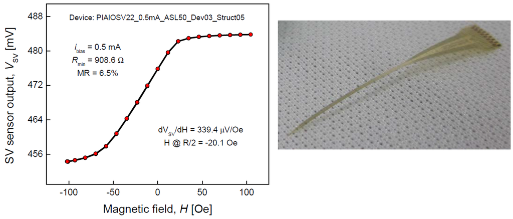 A recent review of the integration of magnetoresistive devices on flexible/bendable media can be found in [23].
