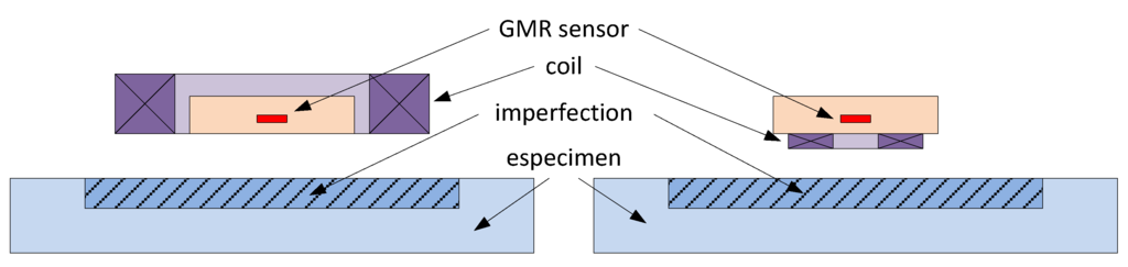 Possible geometric arrangements of coils with GMR sensors for ECT applications.