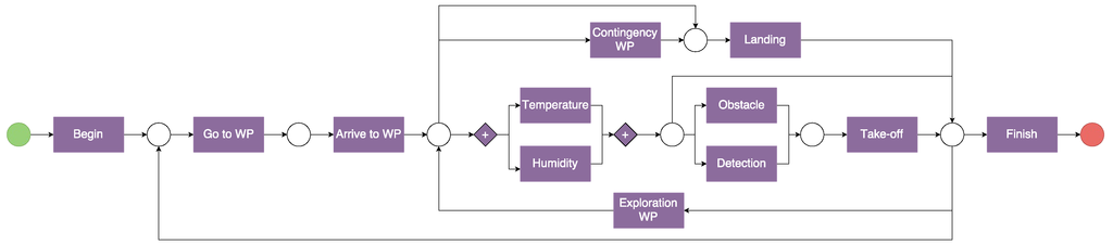 The robot team shall cover the greenhouse completely and periodically to monitor the environmental variables. The proposal of this paper is to perform a model-based mission control and monitoring. This model can be obtained through the experience of previous missions, and the process to obtain it is described below.