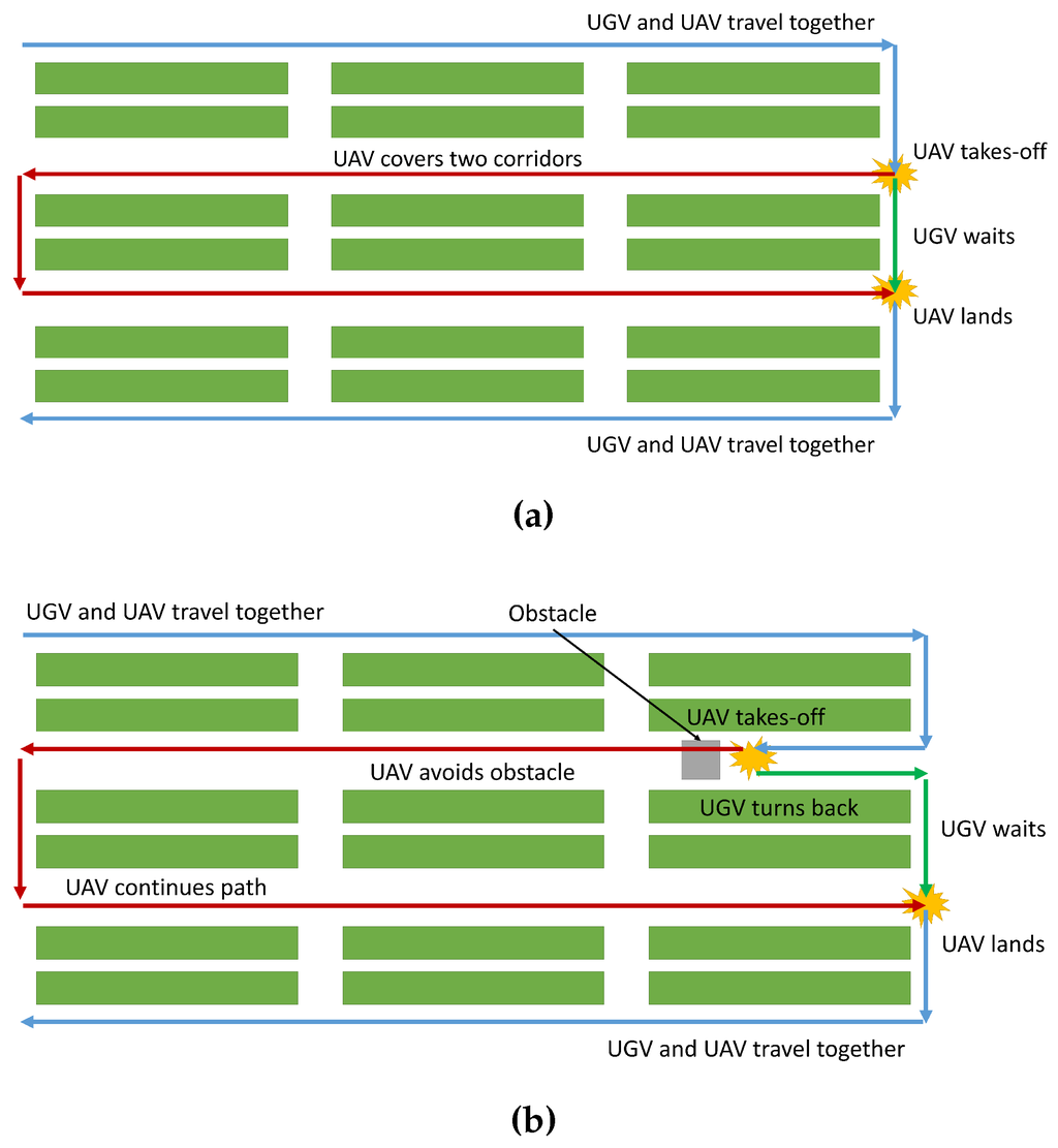 - Conesa-Muñoz, J.; Valente, J.; del Cerro, J.; Barrientos, A.; Ribeiro, Á. Integrating autonomous aerial scouting with autonomous ground actuation to reduce chemical pollution on crop soil. In Robot 2015: Second Iberian Robotics Conference; Springer International Publishing: Berlin/Heidelberg, Germany, 2016; pp. 41–53. [Google Scholar]
