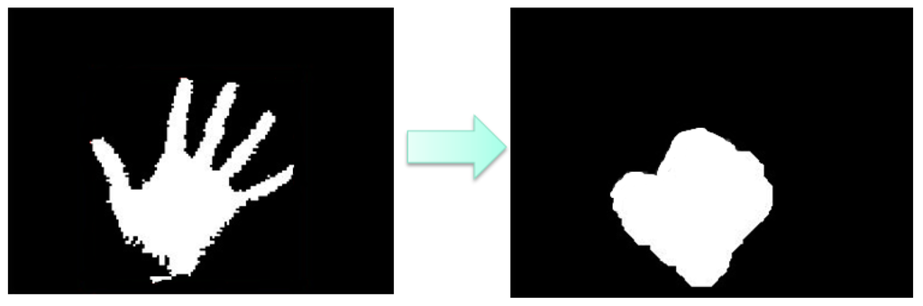 Left image is hand region binary image, the right image is