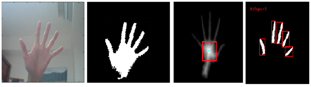 Figure 5 shows the hand gesture recognition process. The gesture can be determined via finger numbers for controlling the manipulator to grasp the specified objects.