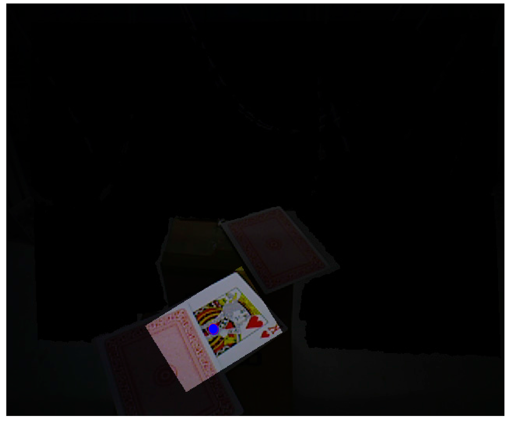The king of diamonds and the jack of spades are chosen, so the finger counting result must be one and two to select the desire patterns. By using the coordinate transformation, the center points of the poker cards are shown as: