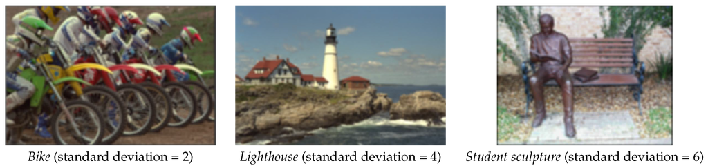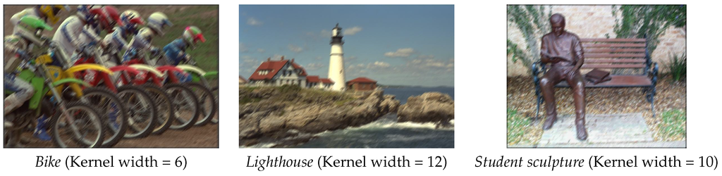 Three gaussian motion blurred images used in our experiments.