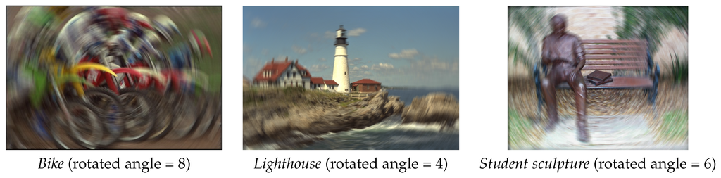 Three rotation motion blurred images used in our experiments.