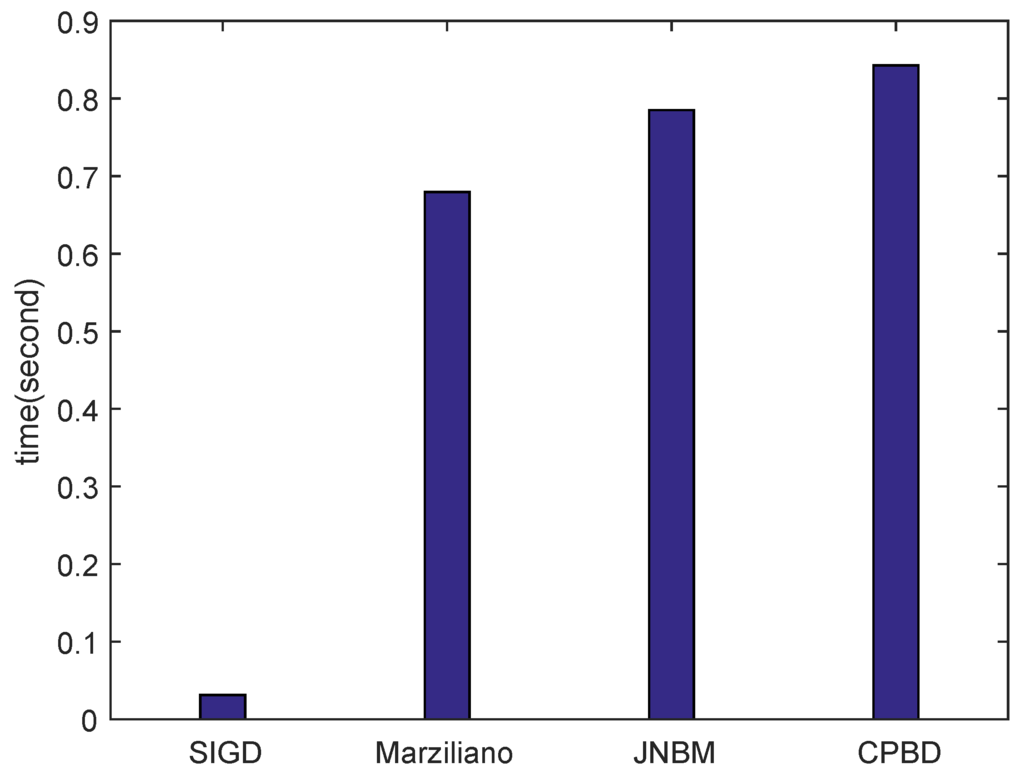 We also compare the mean computational time of different algorithms since high efficiency is important when evaluating the blurred degree. As shown in Figure 6, SIGD is significantly efficient compared to other three algorithms.