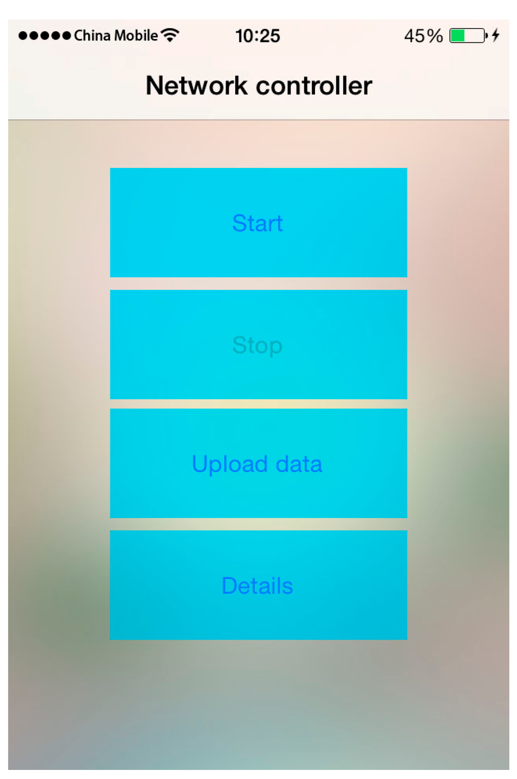 The collector program uses the built-in sensors of the iPhone to collect angle and acceleration data. Prior to data collection, several variables can be set on a collector, including the collection frequency, duration, threshold, and data filename. During data collection, a collector continuously accesses its sensors to obtain data and writes their data to a file. A collector can work independently or under the control of the controller when “network control” is available. Additionally, a map position interface can be used to record the monitoring location. The interface of collector program is shown in Figure 10.