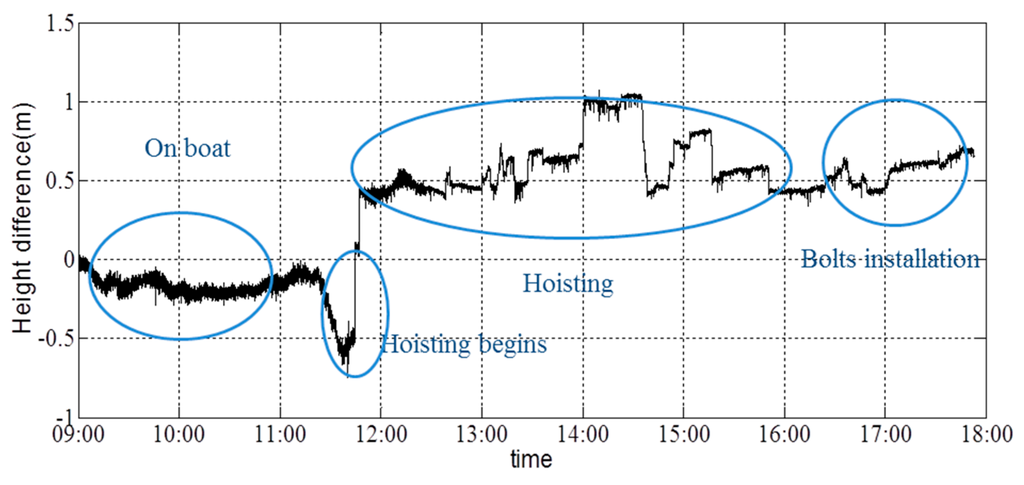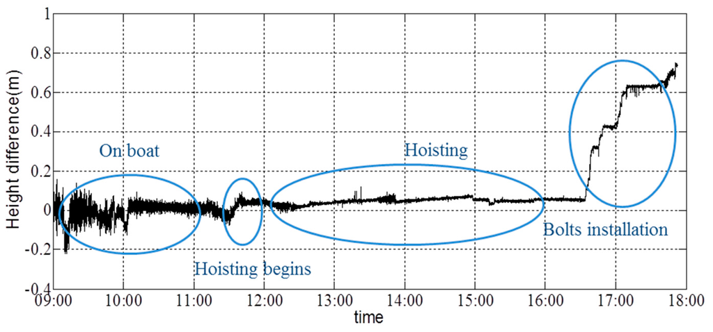 The duration of the entire hoisting process was nearly 9 h—from the transmission of the “start” instruction at 9:00 to the transmission of the “stop” instruction at 17:52. The test period is so long and the battery in iPhone can function 4 h in working state, while this long field test can be achieved if an additional battery is available.