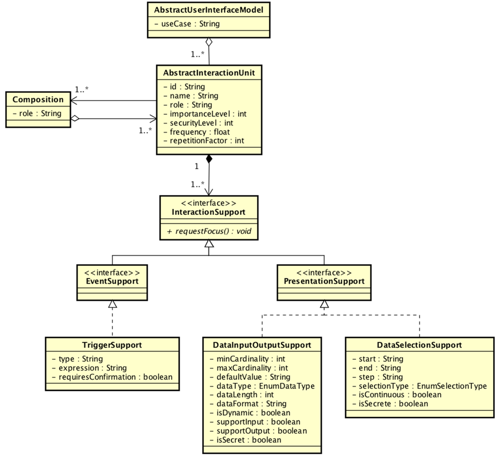 Class conceptual model of the Abstract Interaction Model directly inspired by the UsiXML Abstract User Interface Model.