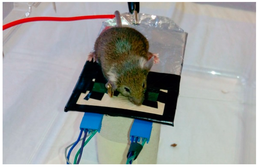Several experiments were performed, with a different approach, using the small platform (system B) shown in Figure 3.There are two EPIC sensors on the platform and the mouse is placed over it. It did not move from the area where the sensors are positioned.