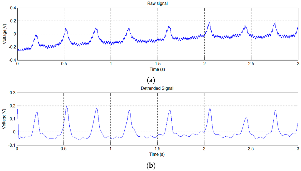 Figure 17 shows the captured signal before and after notch filtering. There is a slight variation in the signal, whose pattern suggests a respiratory-related signal (sinus arrhythmia).