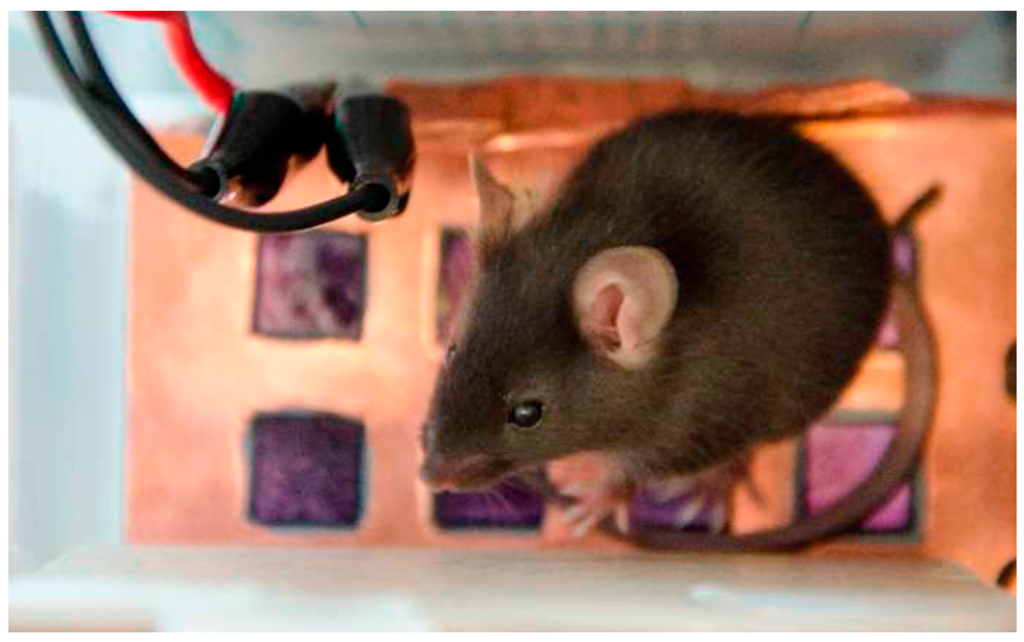 In our experiments with mice, we have used the PS25251 EPIC capacitive sensor (see Figure 1) that incorporates a number of tools to enhance their characteristics, allowing measurement of the electric potential. Its main features are: ultra-high input resistance, typically 20 GΩ, dry-contact capacitive coupling, input capacitance as low as 15 pF, lower −3 dB point typically 200 mHz and upper −3 dB point typically 10 kHz. It operates with bipolar power supply from ±2.4 V to ±5.5 V.