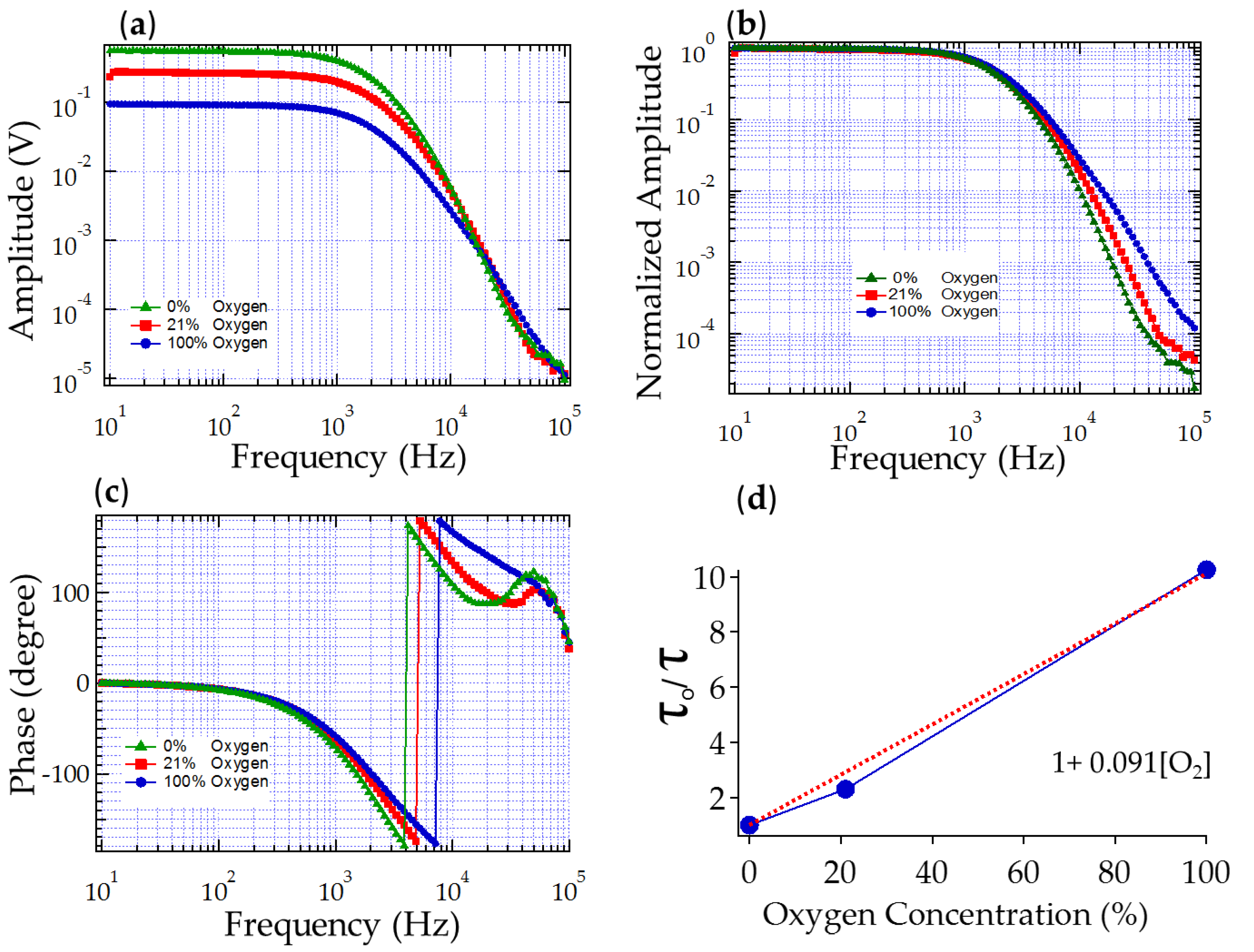 3.1.1. Sensitivity to Oxygen: Oxygen Quenches PtTFPP Phosphorescence
