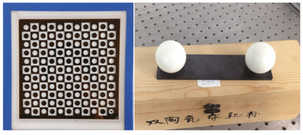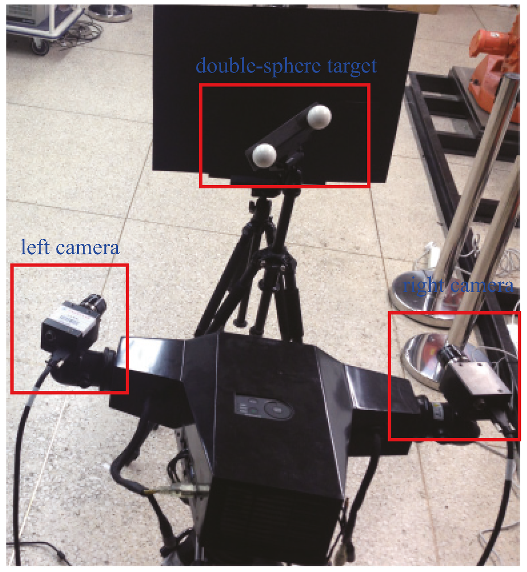 Using the calibrated BSVS by these two methods, we measure the distance between two sphere centres of the double-sphere target and each distance between two adjacent corner points of the checkerboard target. The RMS errors of these measured values are taken as the evaluation criteria of calibration accuracy.