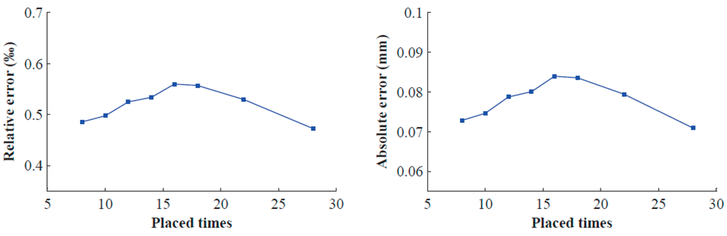 Relative errors and absolute errors of RMS errors with different number of placement times.