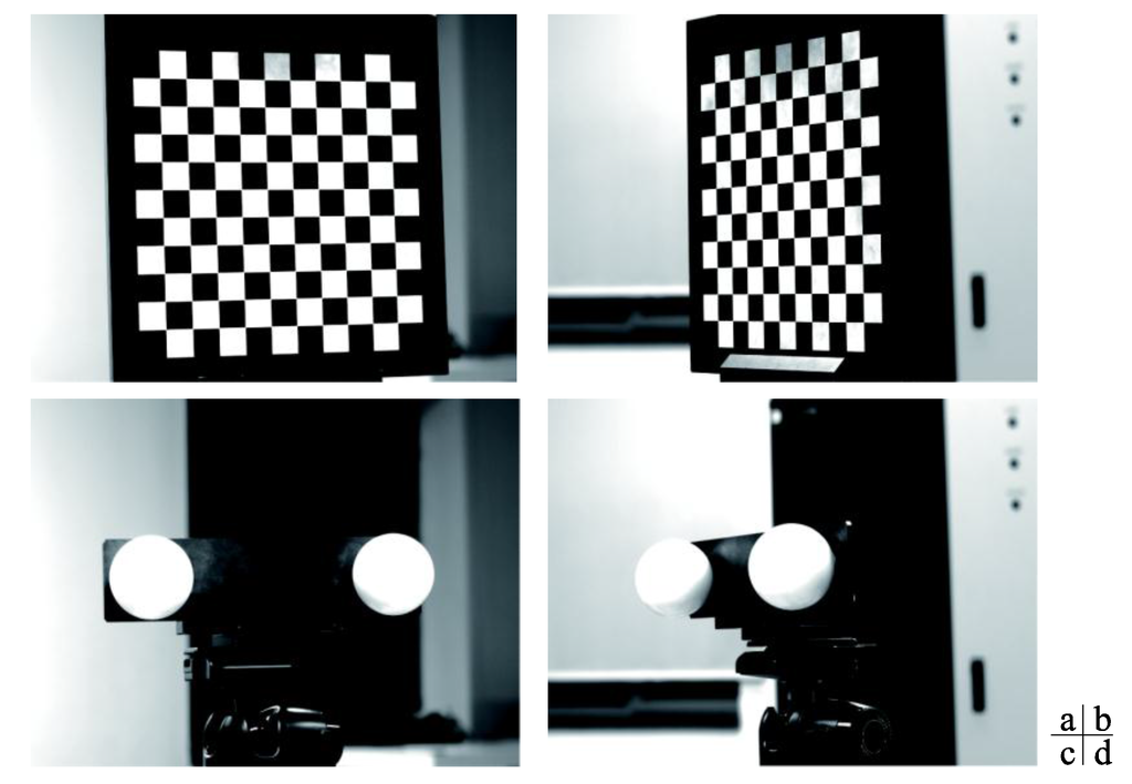 Images of the plane target and the double-sphere target (a,c) are the left images; and (b,d) are the right images.