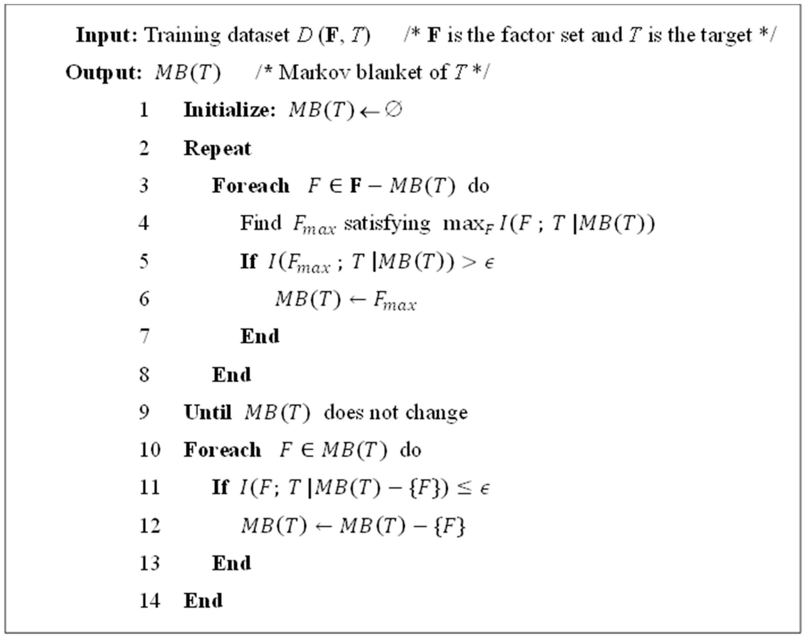 - Tsamardinos, I.; Aliferis, C.; Statnikov, A.; Statnikov, E. Algorithms for Large Scale Markov Blanket Discovery. In Proceedings of the 16th International FLAIRS Conference, St. Augustine, FL, USA, 12–14 May 2003; pp. 376–381.