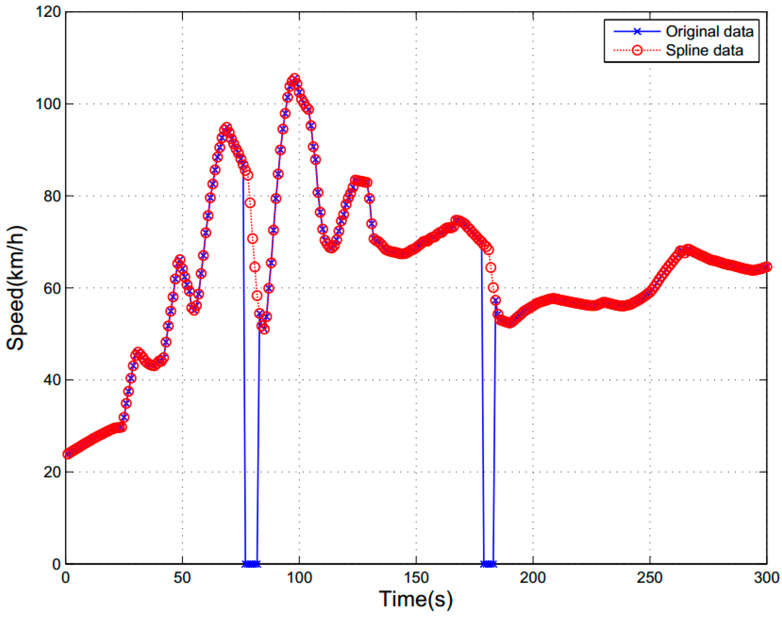 - Chen, H.; Liu, H.; Qiao, S.; Wang, Y. Analysis of Vehicle Driving Data Based On Cubic Spline Interpolation. Automot. Test Test. Technol. 2013, 8, 54–57. [Google Scholar]
