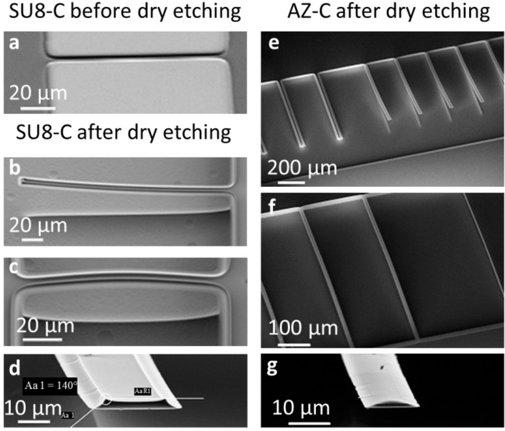 | Photoresist precursor | SU8-2005 | AZ 5214e | SU8-2005 | AZ 5214e |