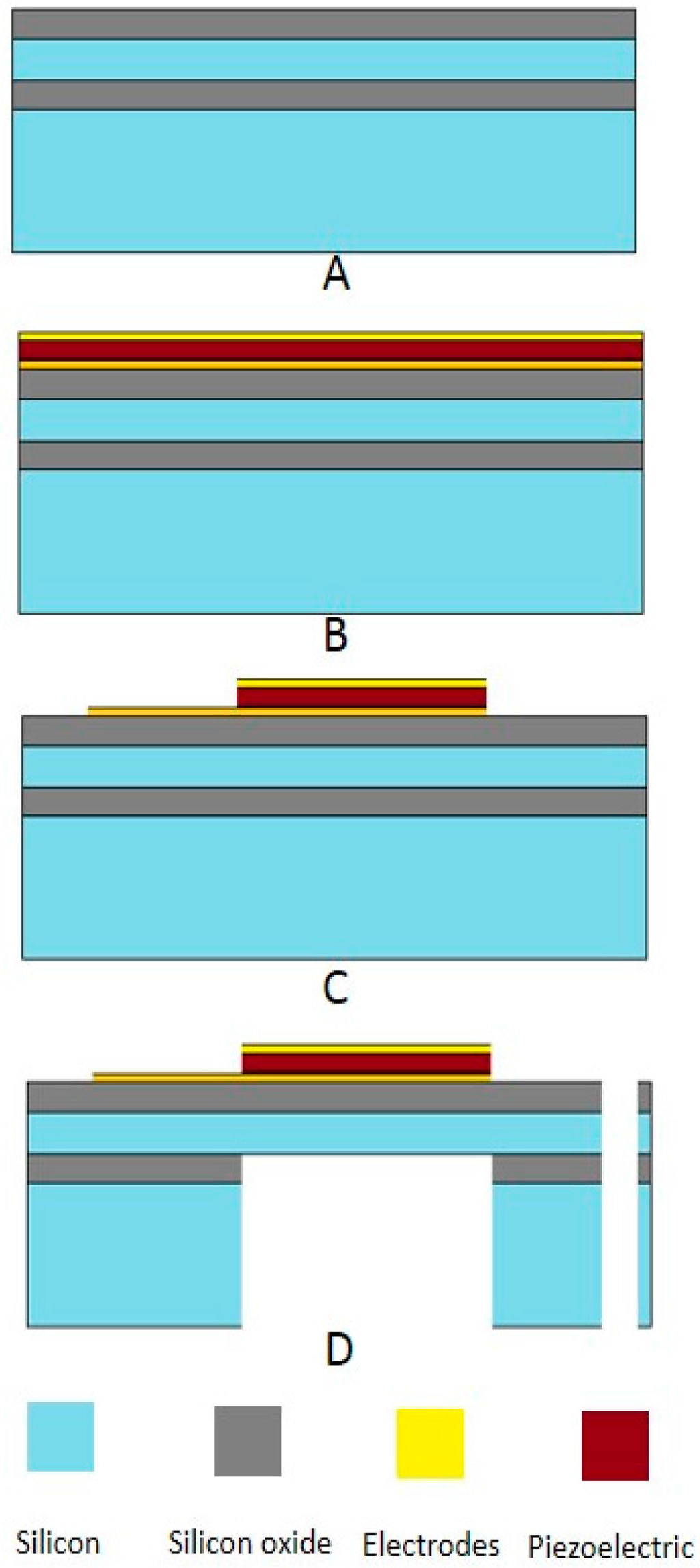 Due to dichotomy behavior, piezoelectric materials have been utilized in many types of sensors and actuators [40,41]. There are different natural crystal classes capable of piezoelectricity, among which three are more commonly utilized in micromechanical systems. They include zinc oxide (ZnO) as a MEMS transducers [42], aluminum nitride (AlN) for thin film depositing [43], and ) (PZT) as an active material [44]. Among them, PZT is the most popular option for power conversion due to its high electromechanical coupling factor as defined below: