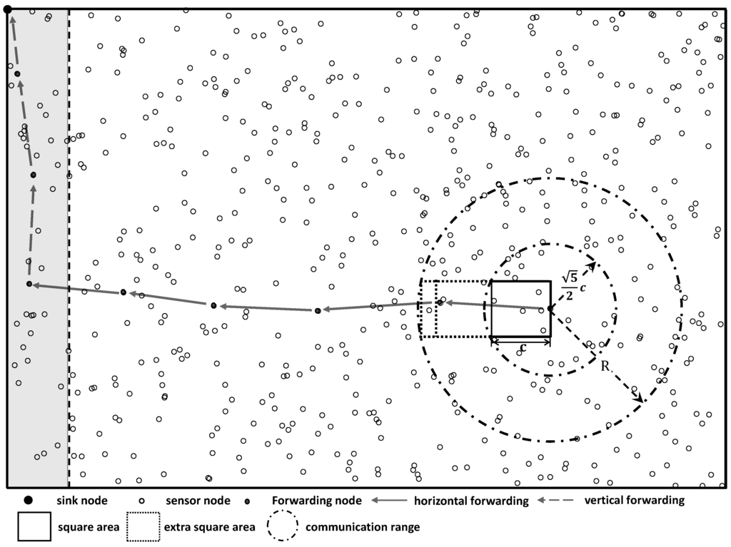 In WSNs, a sink node is the controller of the whole network by sending commands to other sensors, including monitoring the sensors’ status, broadcasting commands to sensors, etc. This task is called the run-up phase. The second task for WSNs is to collect data from all the sensors where data will be sent to the sink node using intermediate relay sensor nodes. This task is called the data-collection phase. Controlled by the sink node, the WSN can either be in the run-up phase or data-collection phase.