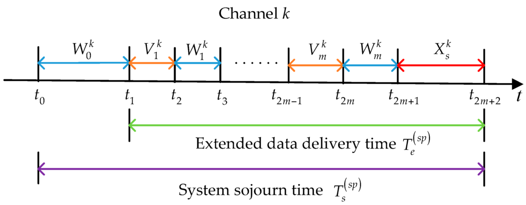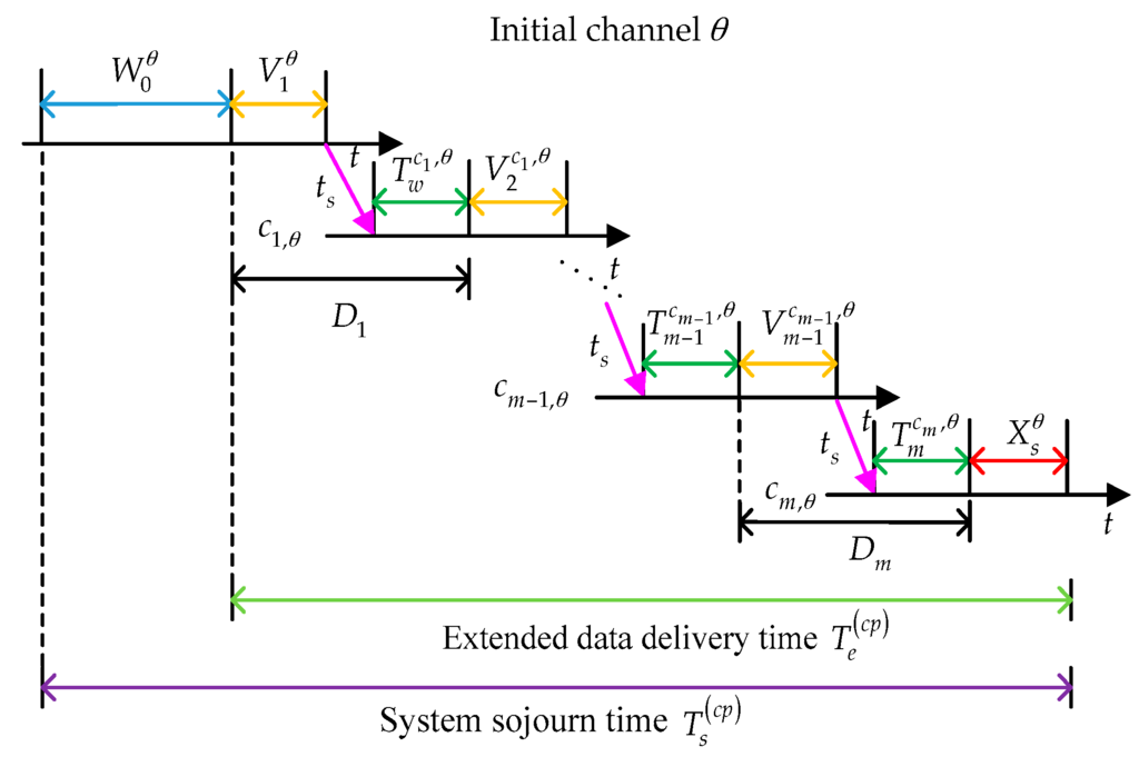 Note that selecting different target channel sequences will result in different average extended data delivery times, and an optimal target channel sequence selection can be realized by the dynamic programming algorithm in [35]. Substituting Equation (24) into Equation (5), the average system sojourn time is: