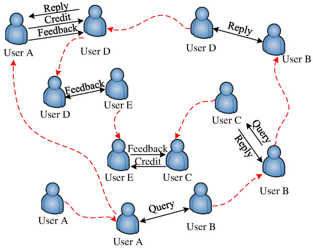 - User i checks if it is a query issuer of any reply in . If it is, User i pays User j a number of credits, which are equal to the appraisal of the reply, and User j removes the reply from .